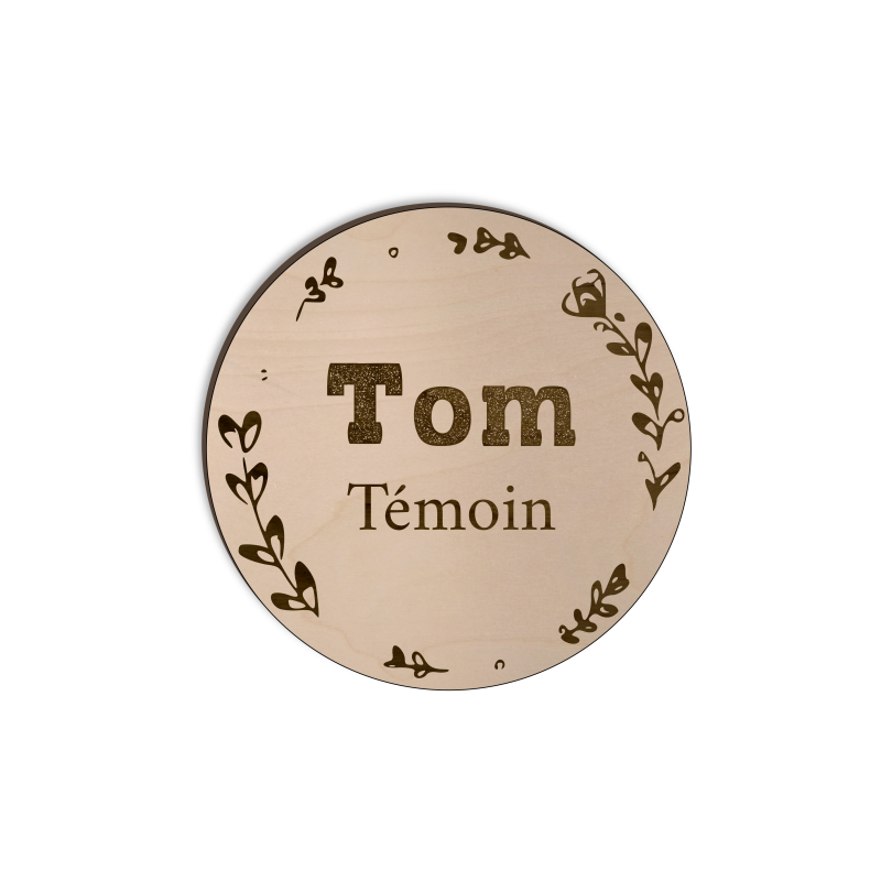 Badge de haute qualité : le badge mariage est fabriqué en bois, un matériau sûr et résistant. Vous pouvez le personnaliser avec votre nom ou en faire un cadeau.