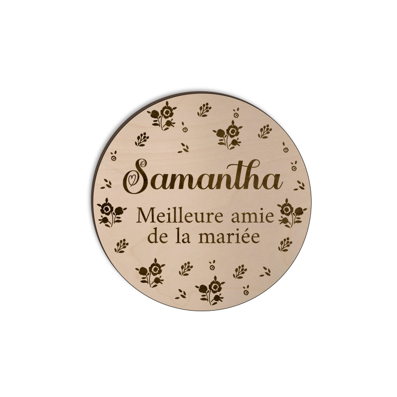 Badge de haute qualité : le badge mariage est fabriqué en bois, un matériau sûr et résistant. Vous pouvez le personnaliser avec votre nom ou en faire un cadeau.