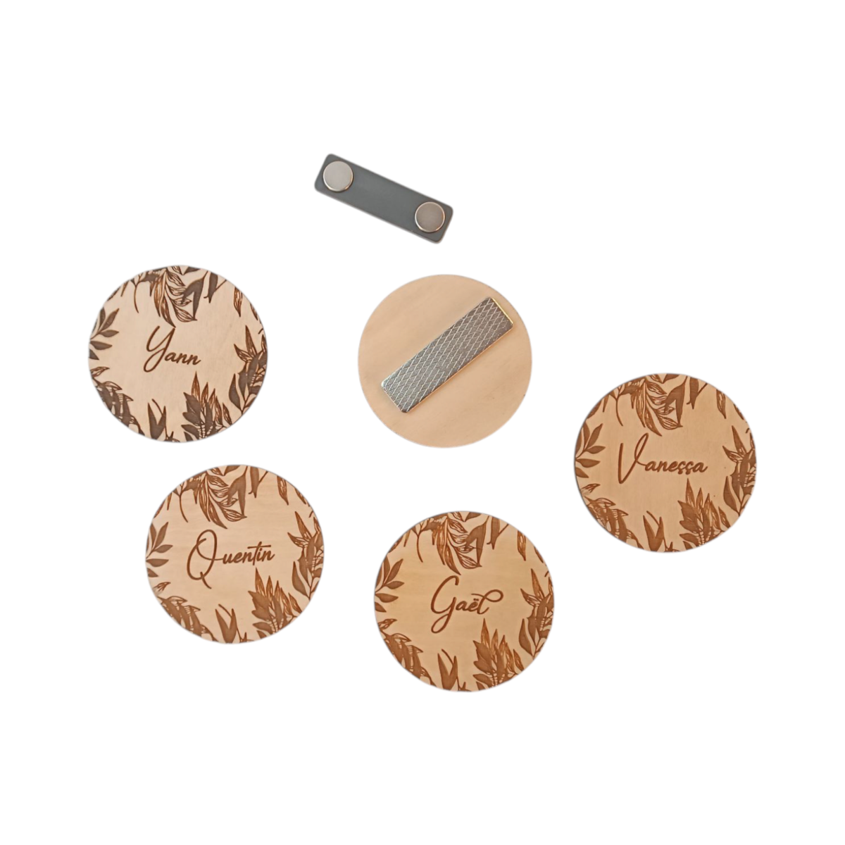 Facile à utiliser : nos badges en bois ont une forme circulaire et sont très légers.
