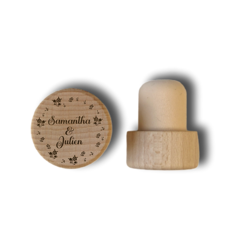 Le bouchon de liège personnalisé avec une tête en bois est une idée de cadeau originale.