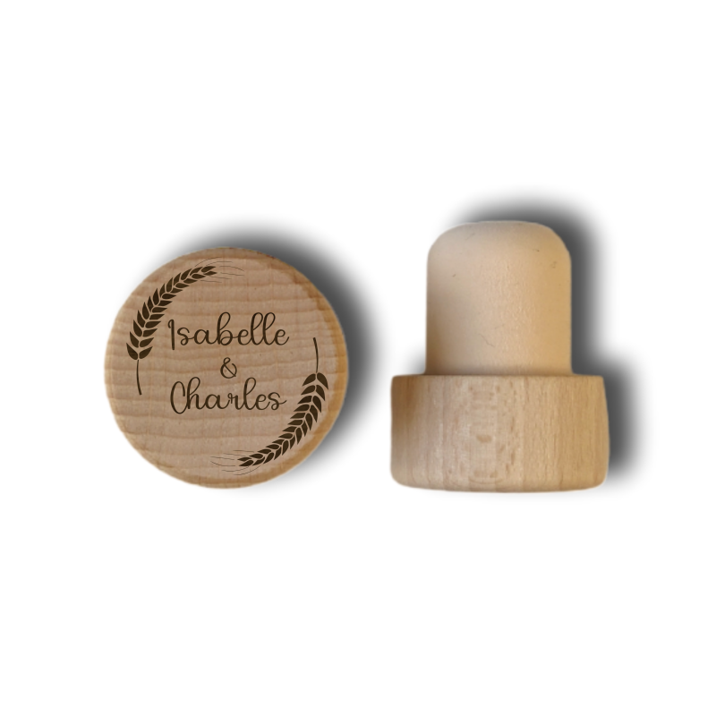 Le bouchon de liège personnalisé avec une tête en bois est une idée de cadeau originale.