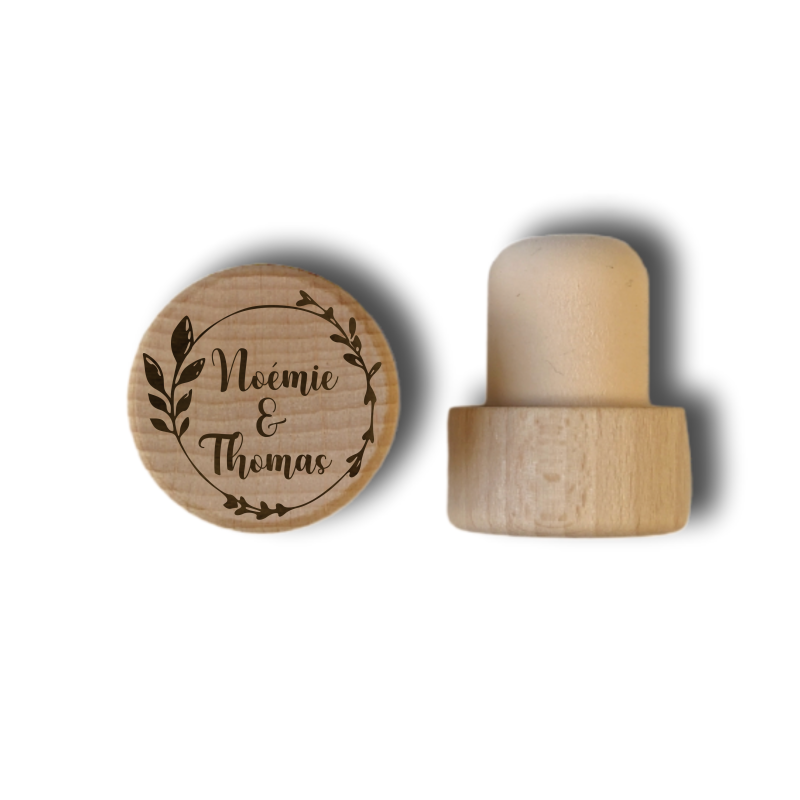 Le bouchon de liège personnalisé avec une tête en bois est une idée de cadeau originale.