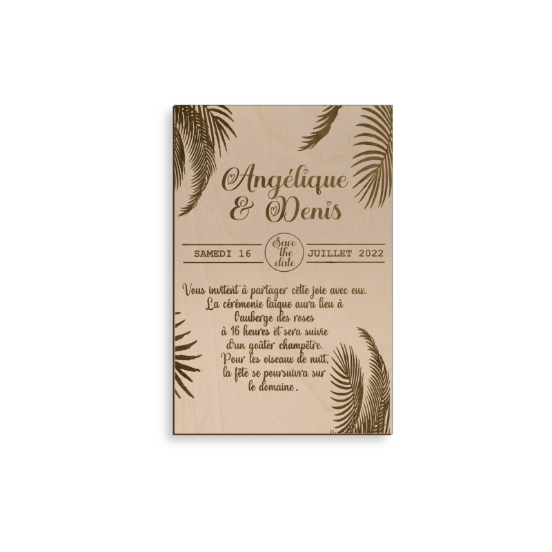 Ce faire-part en bois peut être utilisé pour annoncer tous vos évènements : mariage, baptême, anniversaire, naissance, etc.