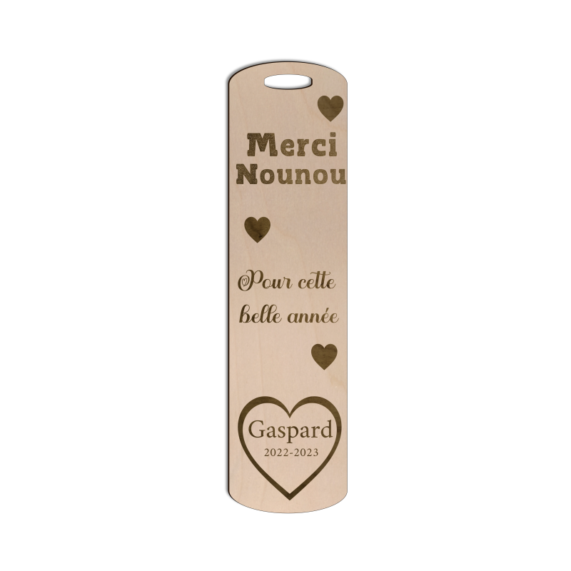 [page_meta_description] => Personnalisation d’objets en bois pour la fin d'année scolaire, Nounou - Idées cadeau originales pour nourrice, maîtresse ou maître : marque page.