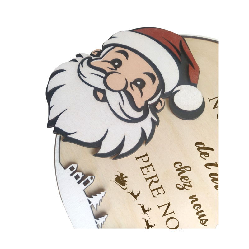 Invitez la magie de Noël dans votre maison avec notre panneau en bois orné d'une impressionnante tête du Père Noël en relief. Chaleureux et artisanal, ce panneau capture l'essence même de la saison festive. Avec l'inscription "N'oublie pas de t'arrêter chez nous Père Noël", ce panneau rappelle avec nostalgie l'excitation des veillées de Noël de notre enfance, où chaque bruit pourrait être le traîneau du Père Noël approchant.
