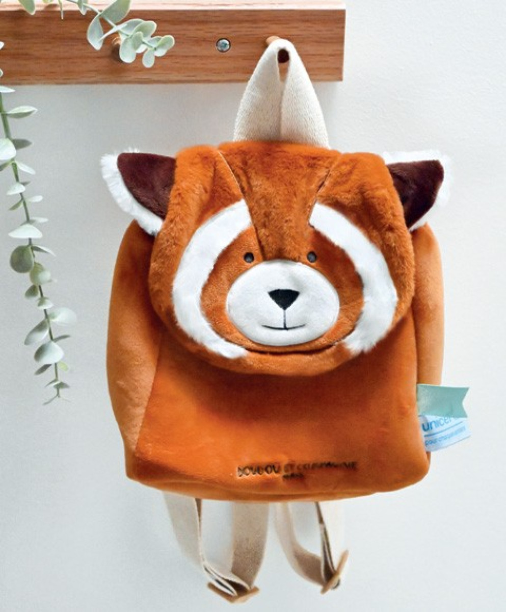 En route vers l'école avec mon sac à dos Panda Roux ! Ce joli sac à dos orange cuivré est entièrement réalisé en matière toute douce . Amusant, son rabat en peluche est en forme de tête de panda. Facile d'utilisation avec sa fermeture velcro, ses sangles sont réglables. D'une taille parfaite pour ranger le Doudou, un change et son goûter. Dès 18 mois.